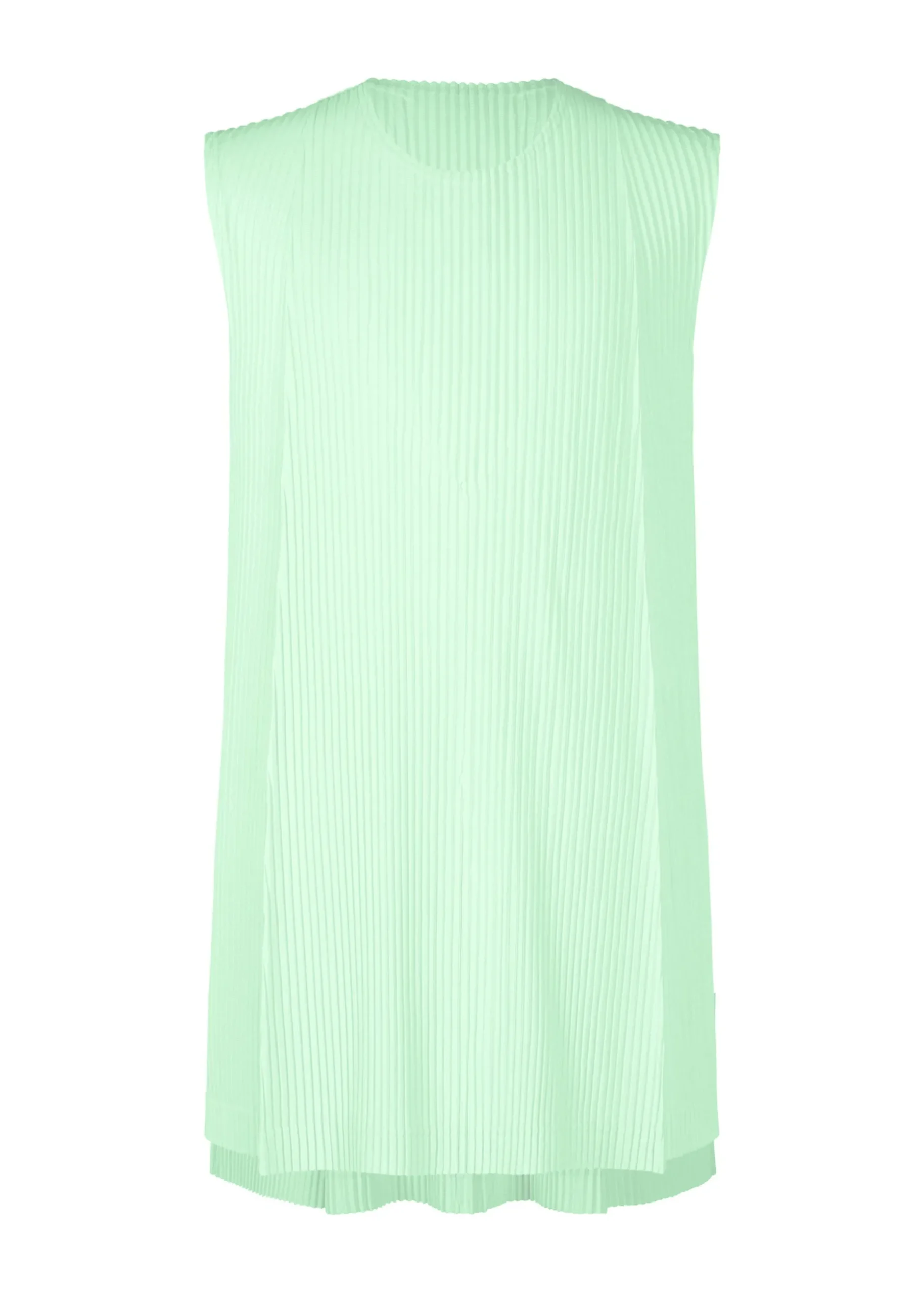 This round-neck, sleeveless top is available in refreshing color tones. It is characterized by its portability and light comfort with the unique quick-drying property of polyester material. It has slits on both sides.
