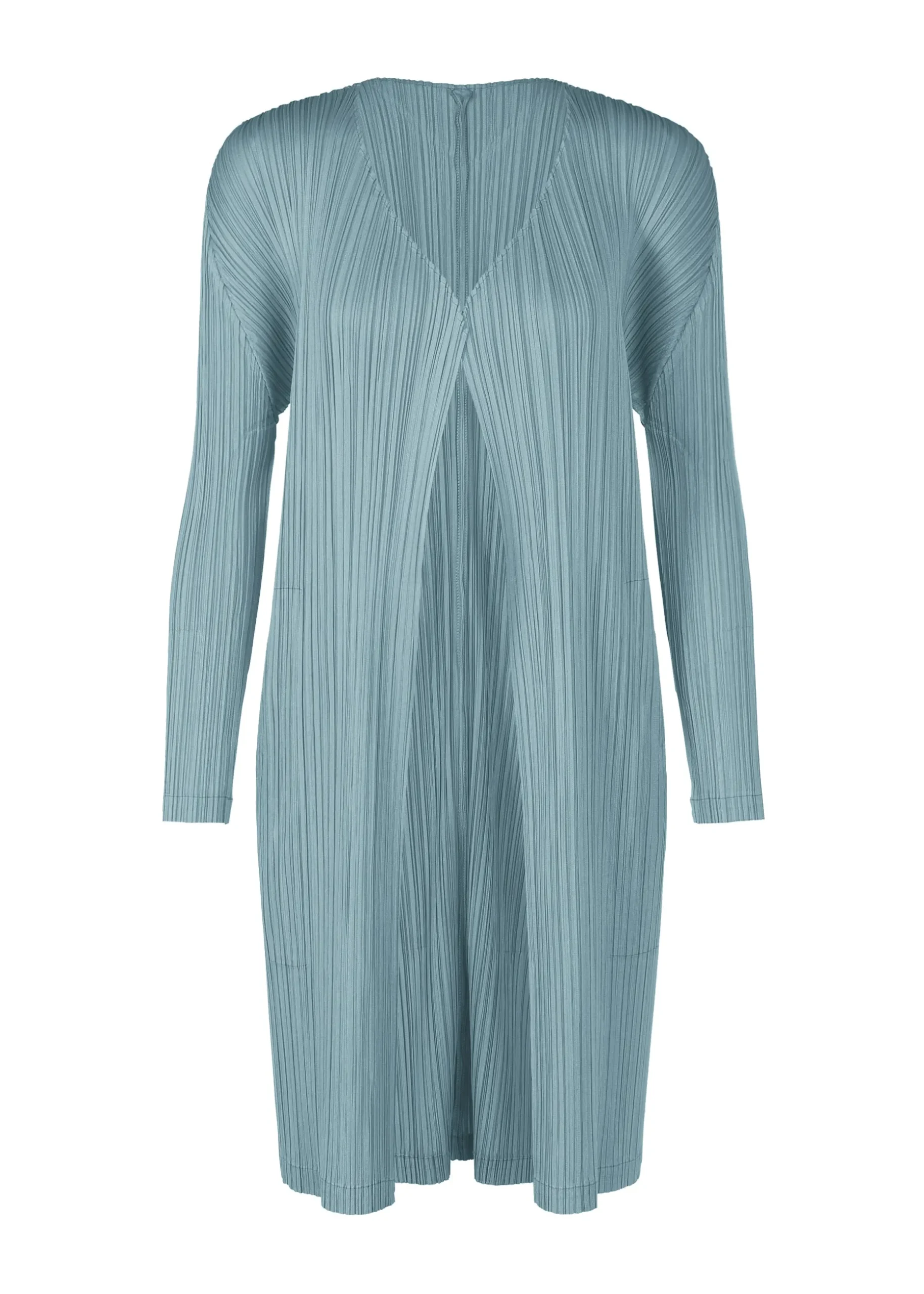This long cardigan is available in colors inspired by temperature differences that can be seen through infrared thermography cameras. Warmth is expressed with yellow and pink tones, while coolness is expressed in blue-gray and blue-green. There are pockets on both sides.