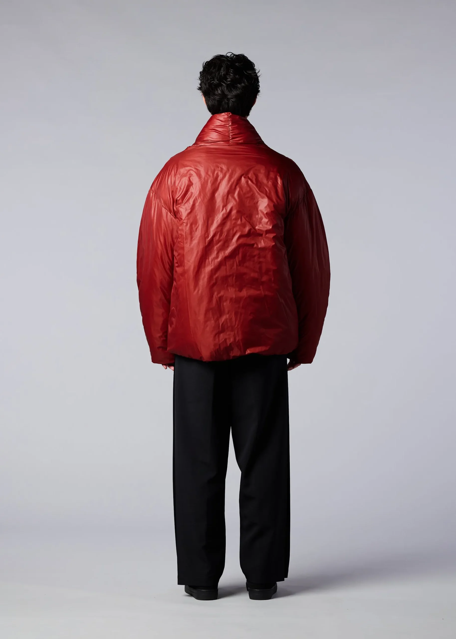 A short puffer blouson with a mud dumpling motif that is both lightweight and warm. Both the outer material and the lining are made of 100% plant-based nylon, and the filling is made of recycled polyester called Airflake. We researched a design that would prevent the filling from shifting.