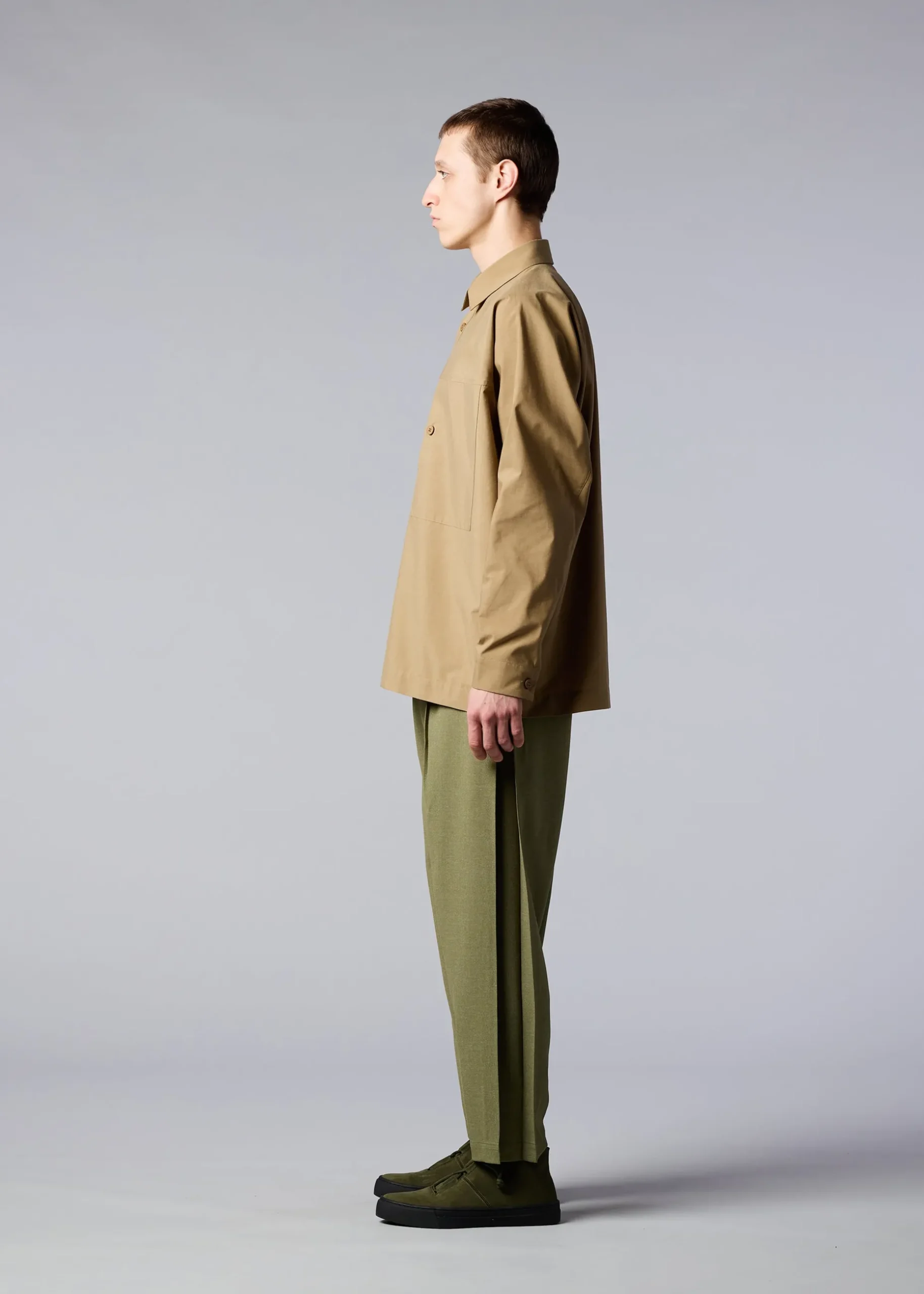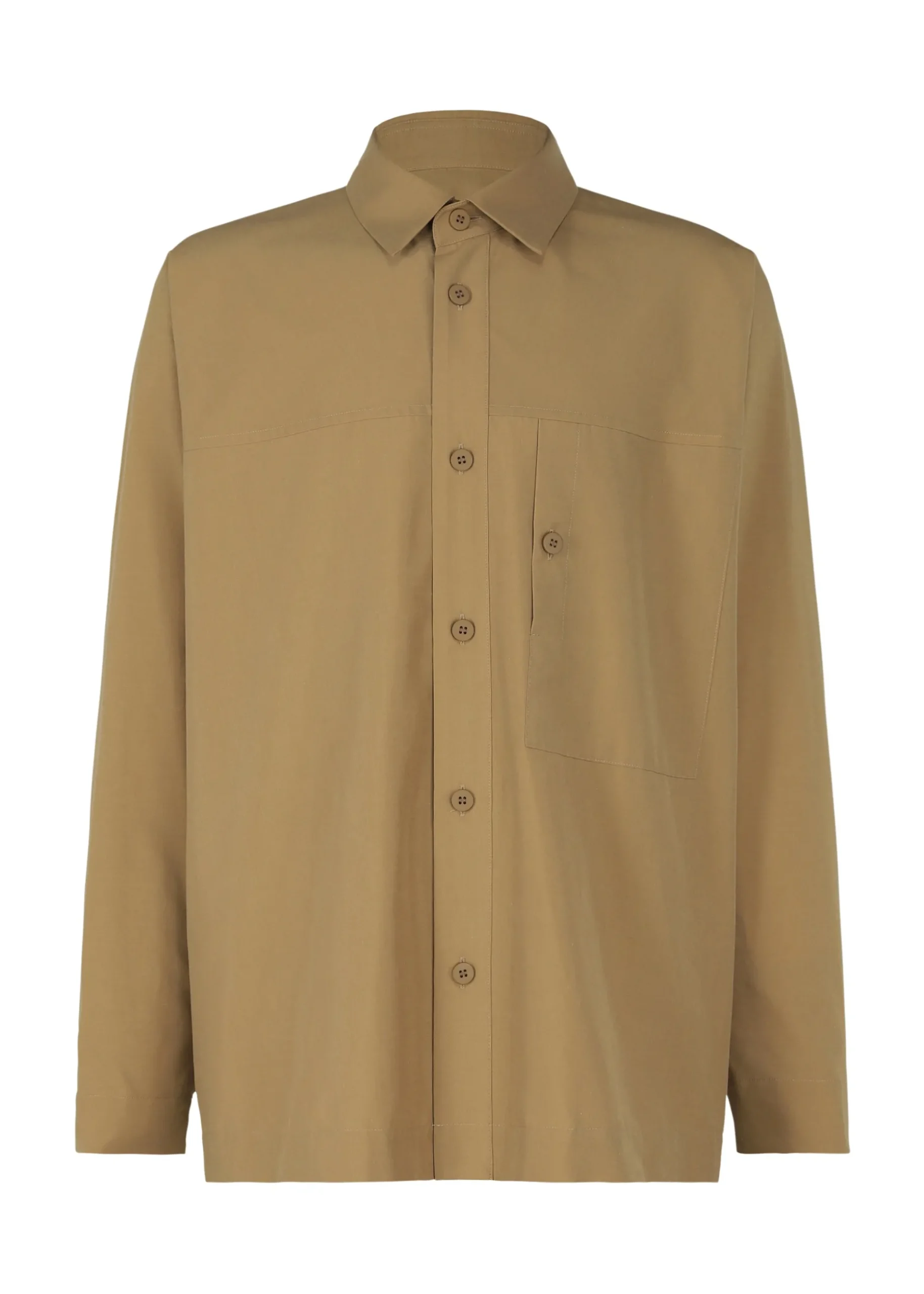 A “ONE CUT” shirt is a single part that can be cut out of cloth in a single cut, forming the three-dimensional base of the garment. “ONE CUT” is an approach unique to IM MEN that differs from traditional clothing making in which multiple parts are sewn together. A blend of recycled polyester and cotton creates a textile that is soft, wrinkle-resistant, and dries quickly. A simple design that can be worn throughout the year.