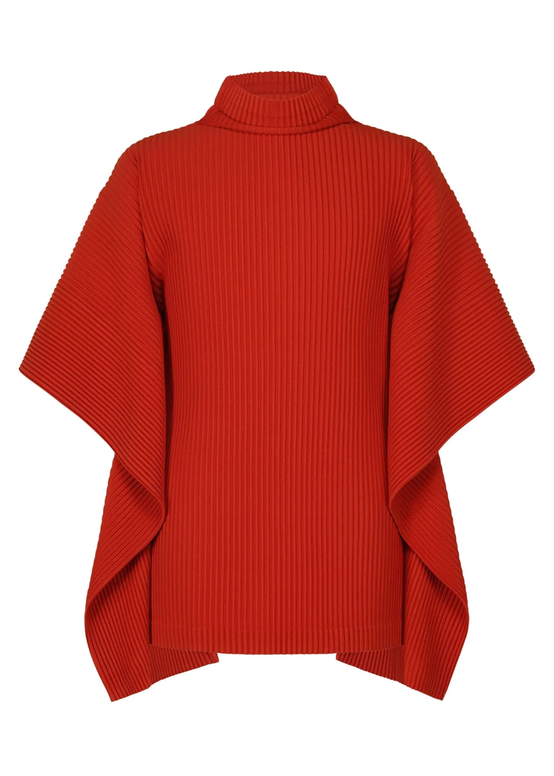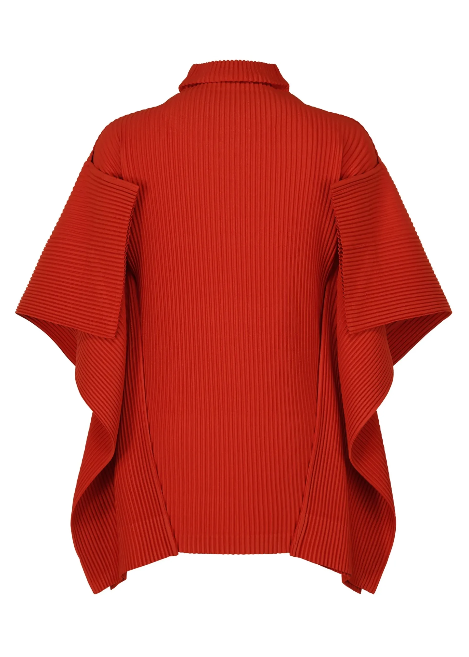 This pleated shirt has a slim fit with dramatic draped three-quarter length sleeves and a high neck.