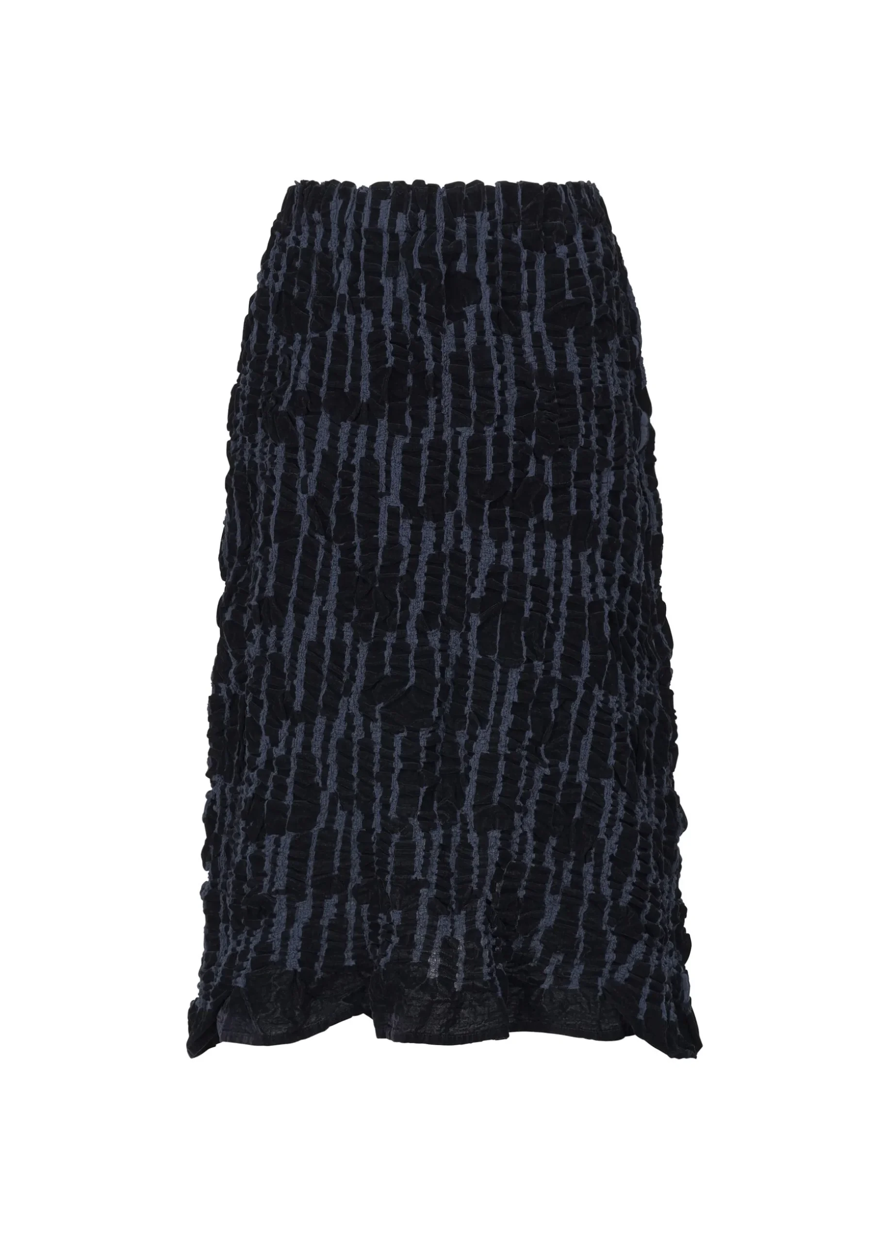 This skirt has a relaxed comfortable fit, an elastic waist, and two side pockets.