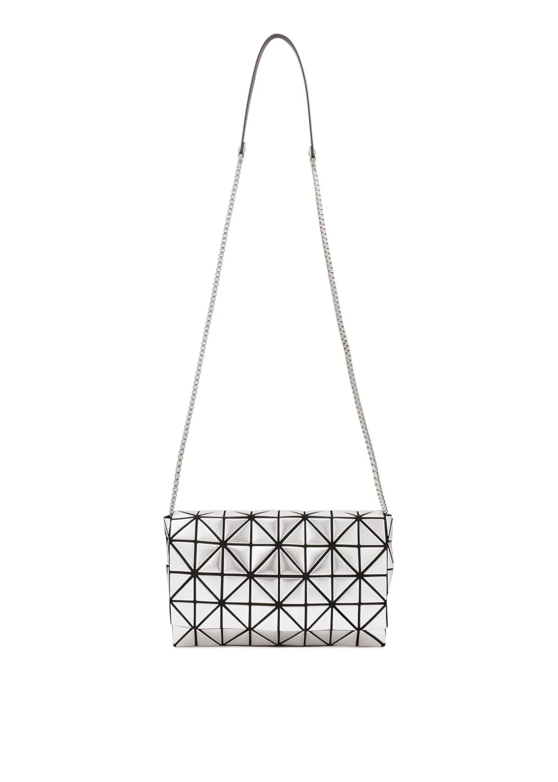 A shoulder bag from the PLATINUM series that is made of triangular pieces made of metallic material with a fabric pattern embossed on them. The entire bag can be worn as if it were a single accessory, giving it a luxurious feel that can be worn not only on special occasions, but also as an accent to your everyday outfit. It has a flap and a zipper, so you can safely store your valuables. The size allows you to store your smartphone and compact wallet.