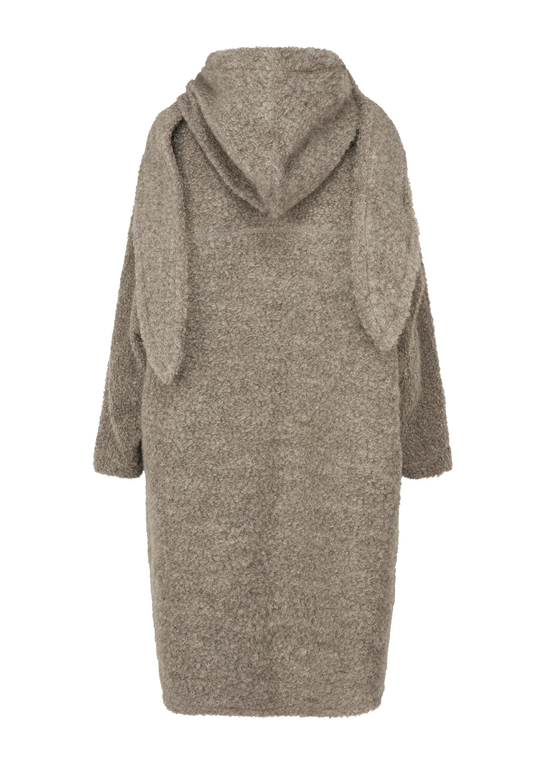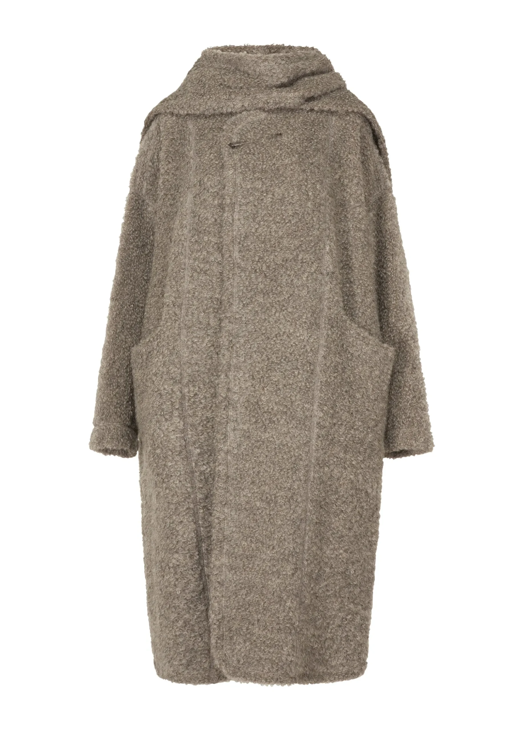 This long coat was crafted by leveraging the original hue of the fabric without dyeing it, recognizing anew the strength of natural colors. It is made using inlay knitting with thread from highly rare Gotland sheep. It is characterized by its an elegant gray sheen and texture with soft loops. Enjoy the high-quality material, as each item has a unique texture and color created by nature.