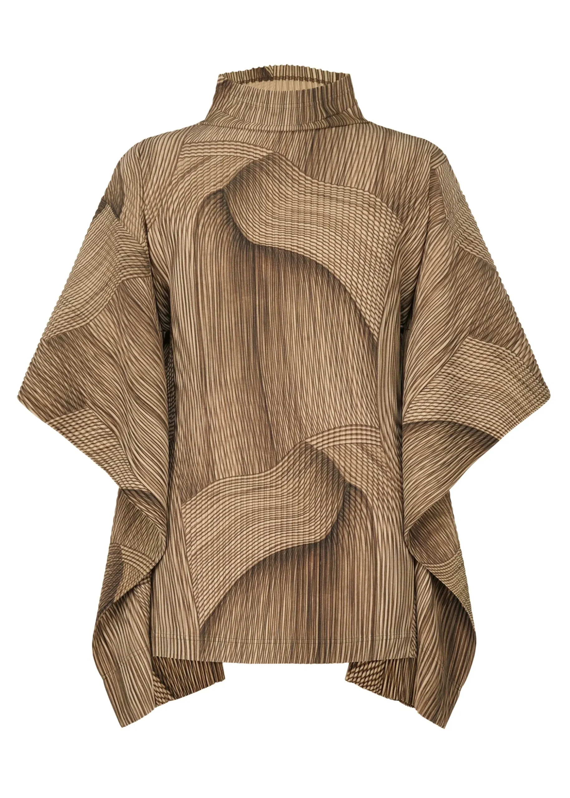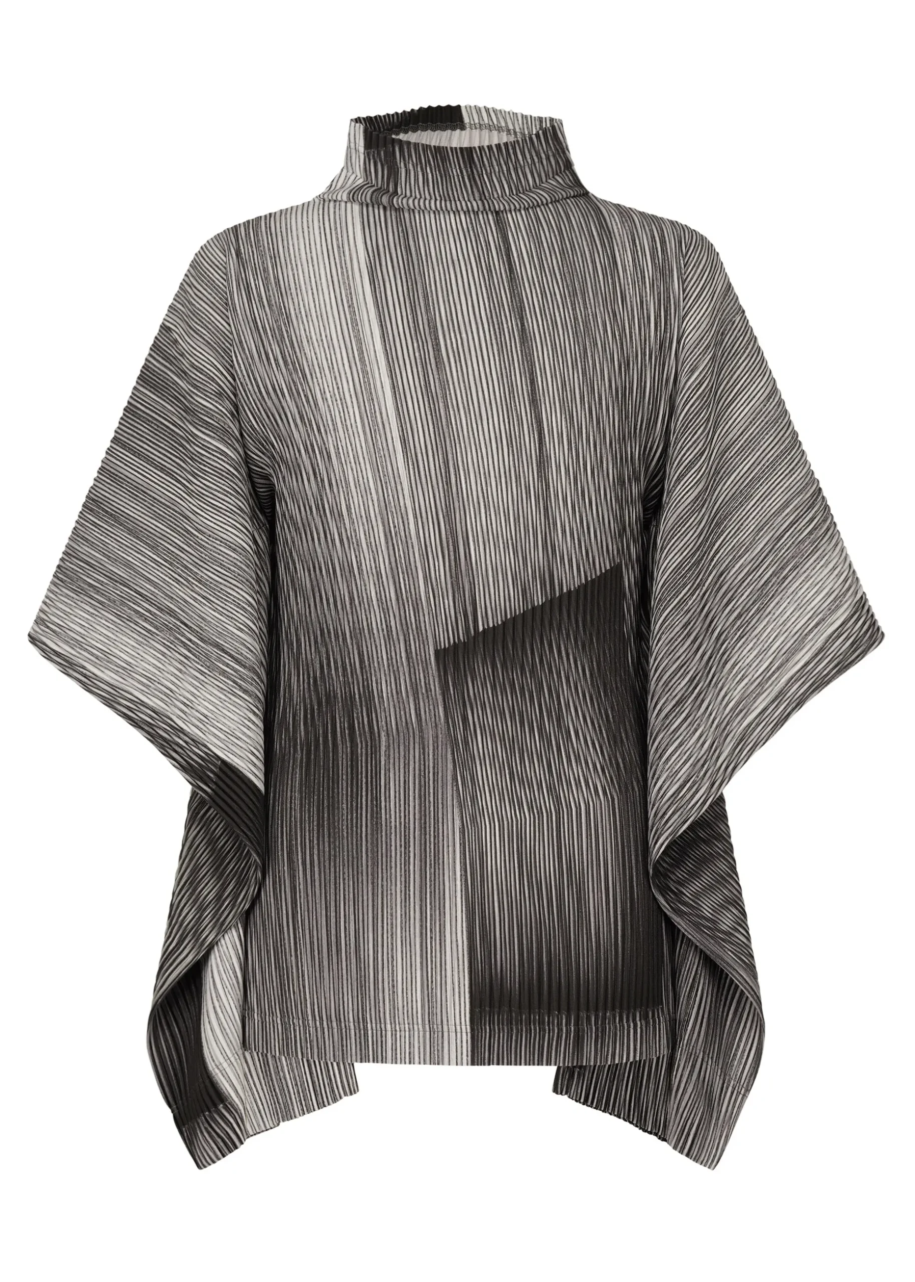 This high-neck top crosses Ronan Bouroullec’s representative group of works, “ALL OVER,” with a standard pleated material. The original work, filled evenly with countless lines, gives the impression of being immersed in the work rather than viewing it.
