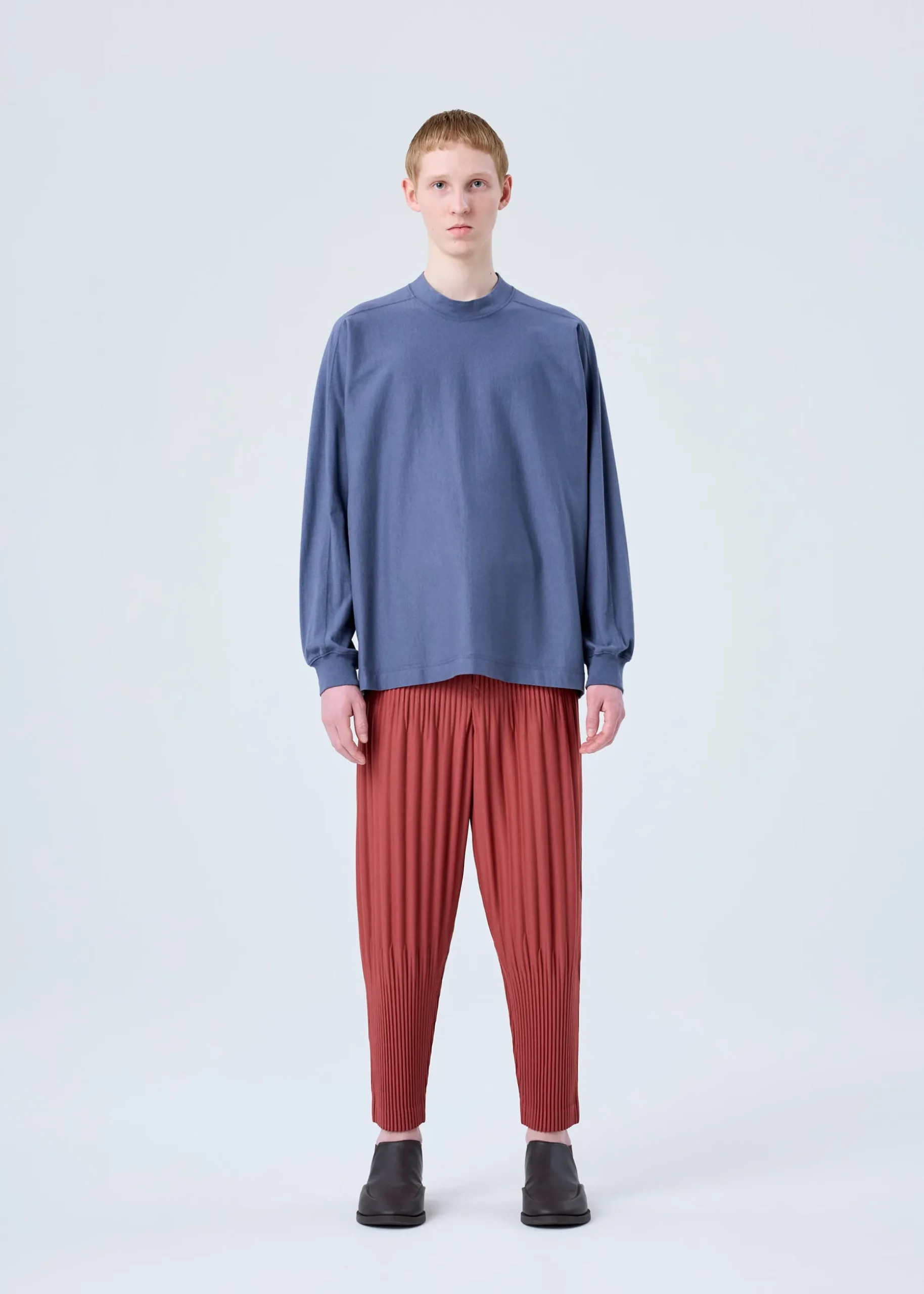 These pants with Keshi pleats feature colors extracted from the markers used by designer/artist Ronan Bouroullec in his drawings. The color variations express Bouroullec’s world. They have pockets on both sides and an inner drawcord. They have a button-fly design.