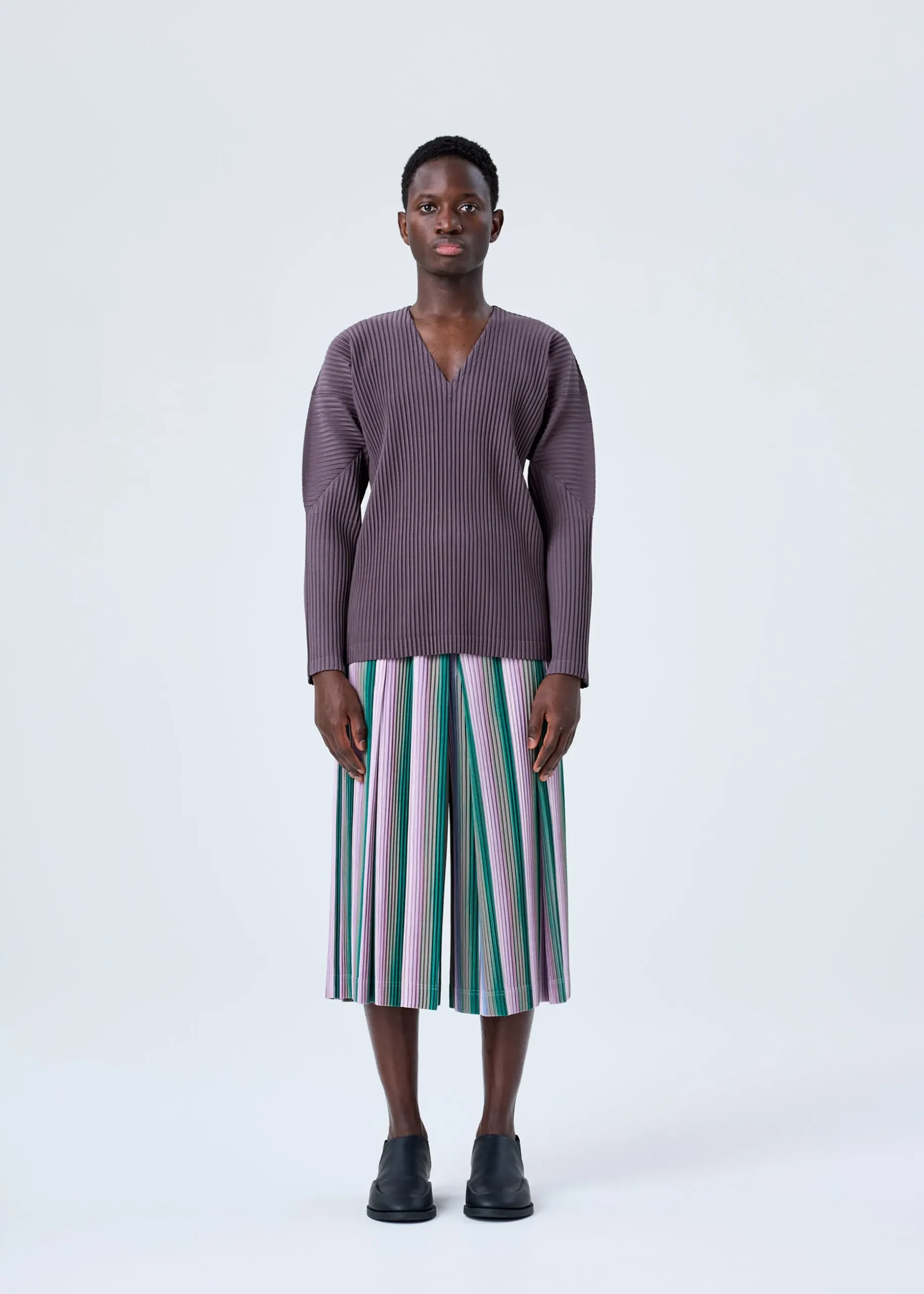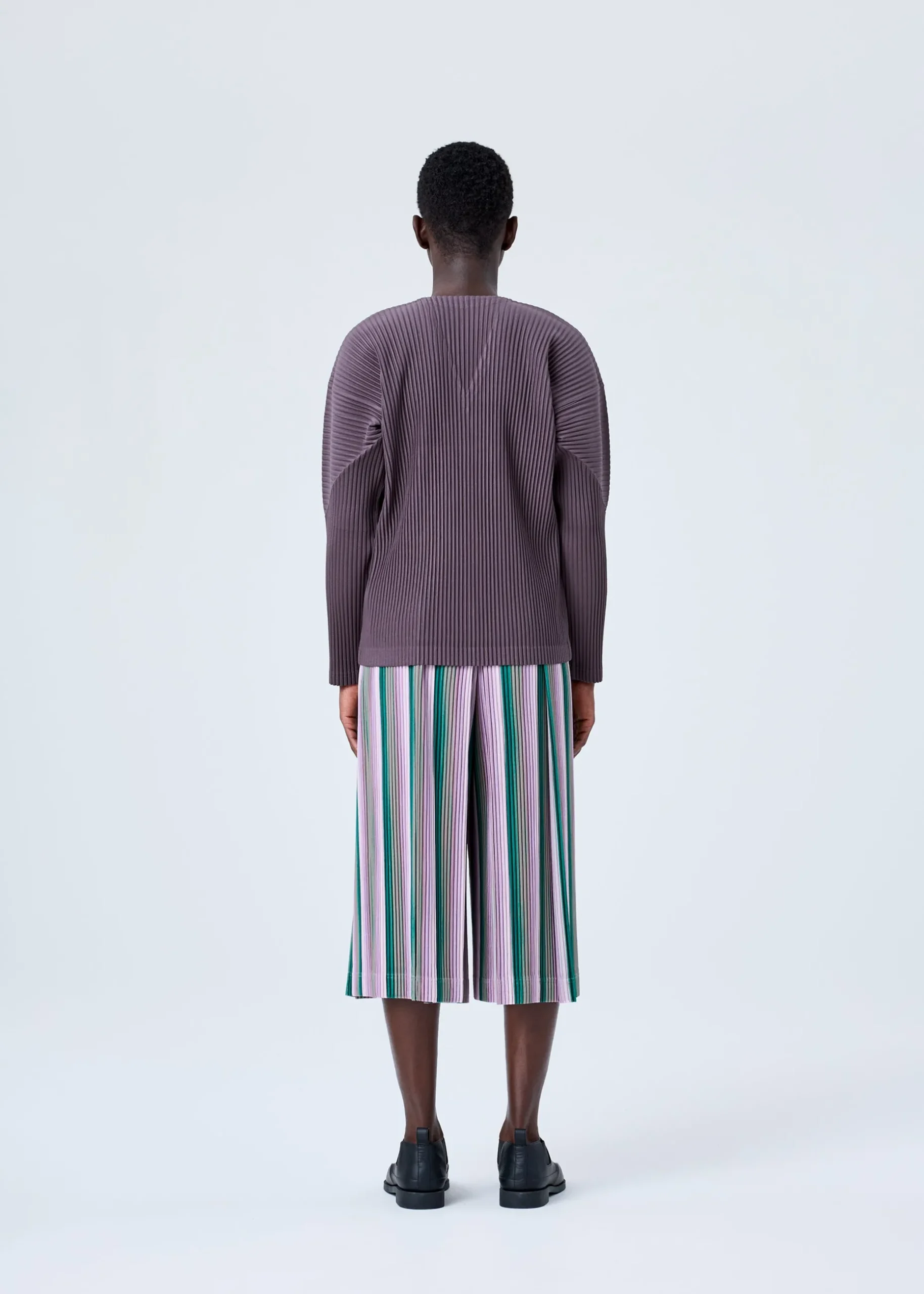 These hakama-style wide-leg pants feature a striped print taken from a part of designer/artist Ronan Bouroullec’s drawings. Enjoy the graphics of this impressive item. They have pockets on both sides and an inner drawcord.