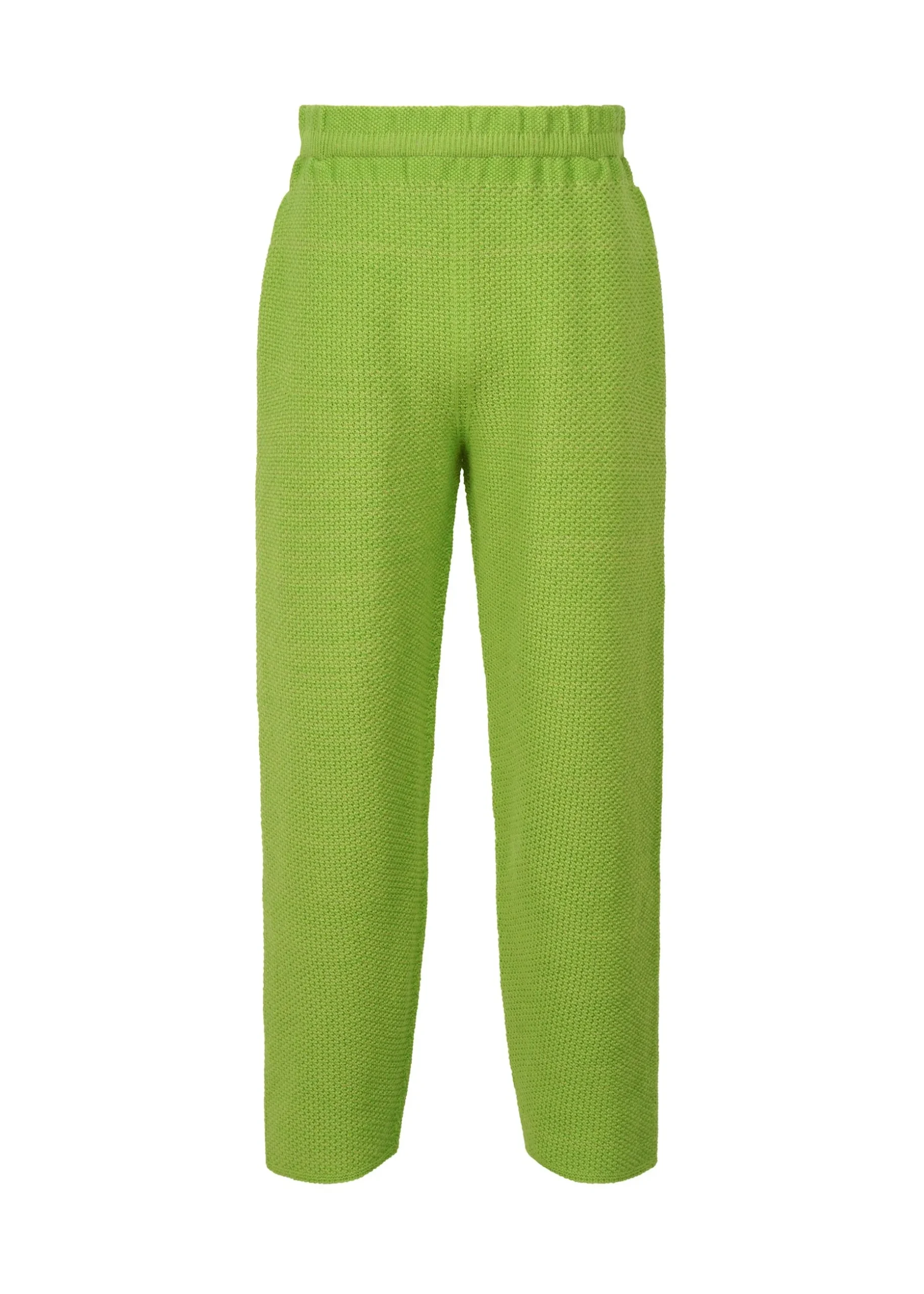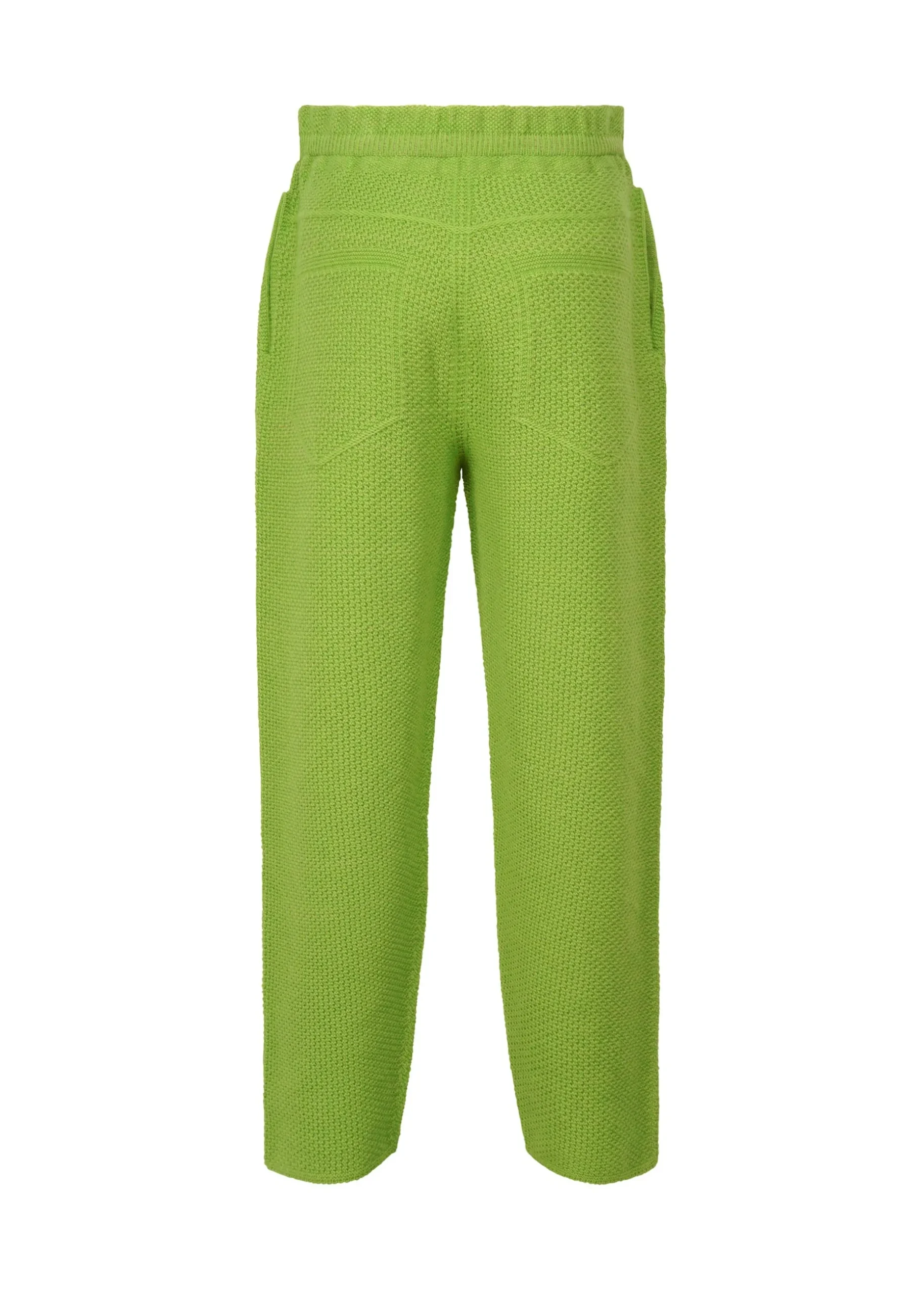 These knit pants combine standard knitted fabric and ribbing for a varied silhouette. They are characterized by their soft, light texture. They have pockets on both sides and an inner drawcord.