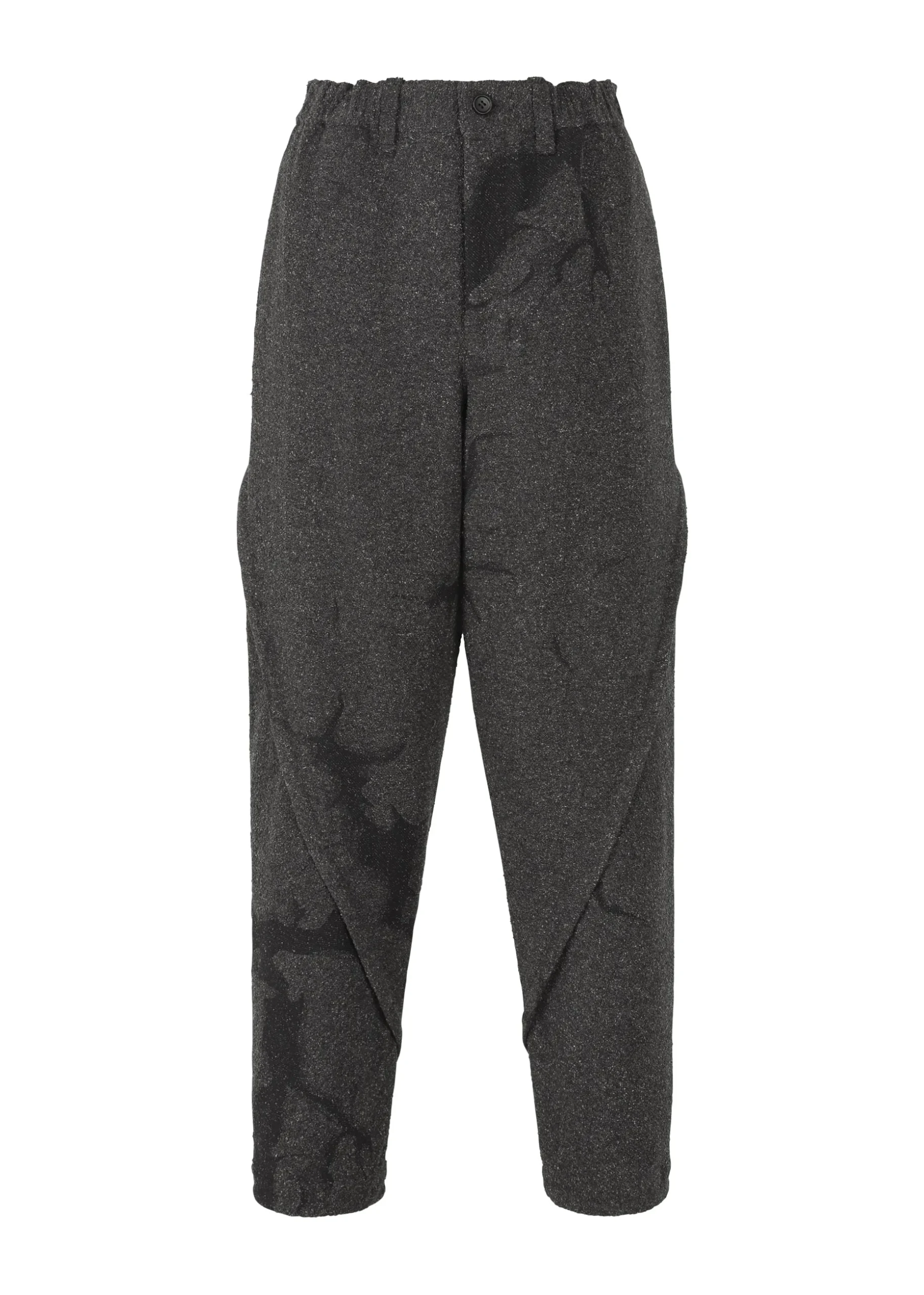 Jacquard expresses the texture of soil, which is a mixture of various materials. These pants are made from a structure made from a single cut line, and the cut lines are joined together with a bag stitch. The lines running through the clothes are an accent. The pattern of this product is different one by one. Thank you for your understanding.