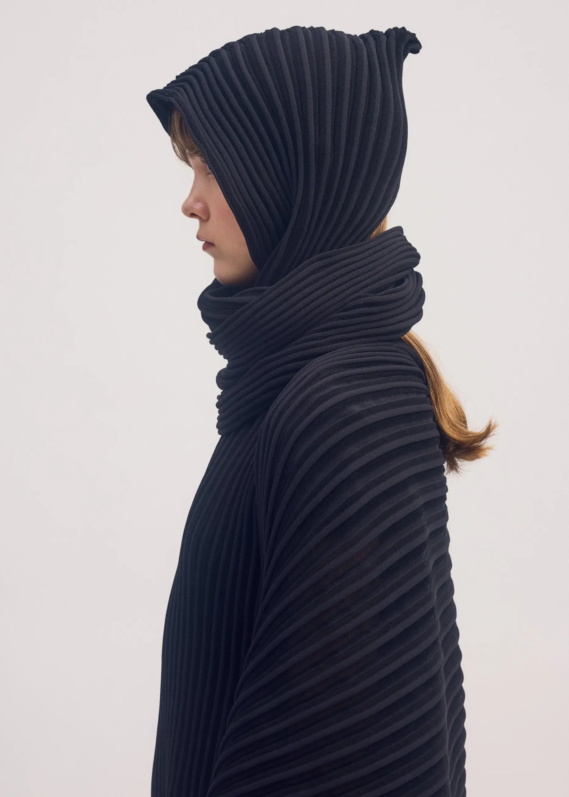 A seamless knit stole that uses garter fabric to express the relaxed flow of water. You can enjoy a variety of ways to use it, such as wrapping it around your neck or wrapping it around your head.