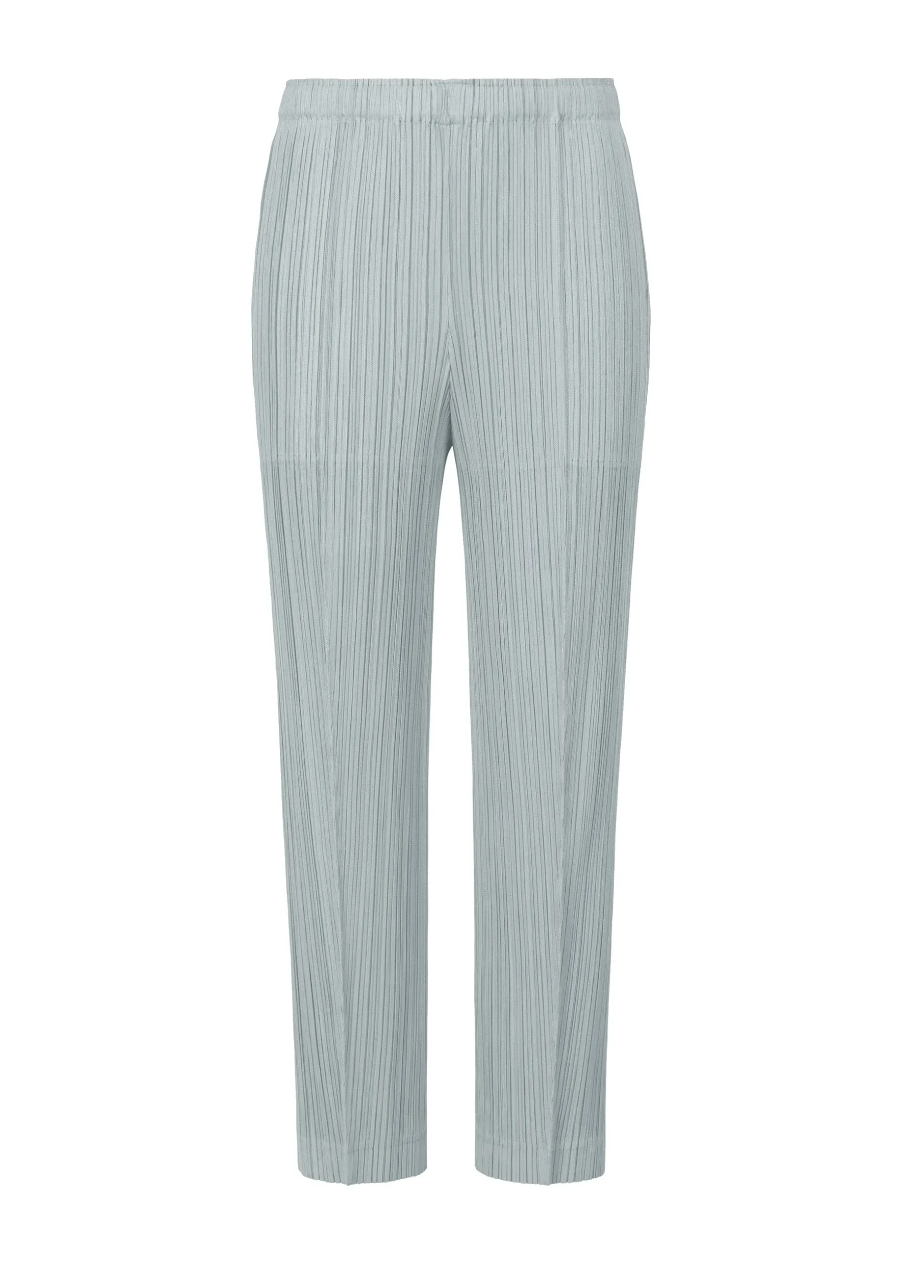 These tapered pants are made using thick fabric. They have pockets on both sides.