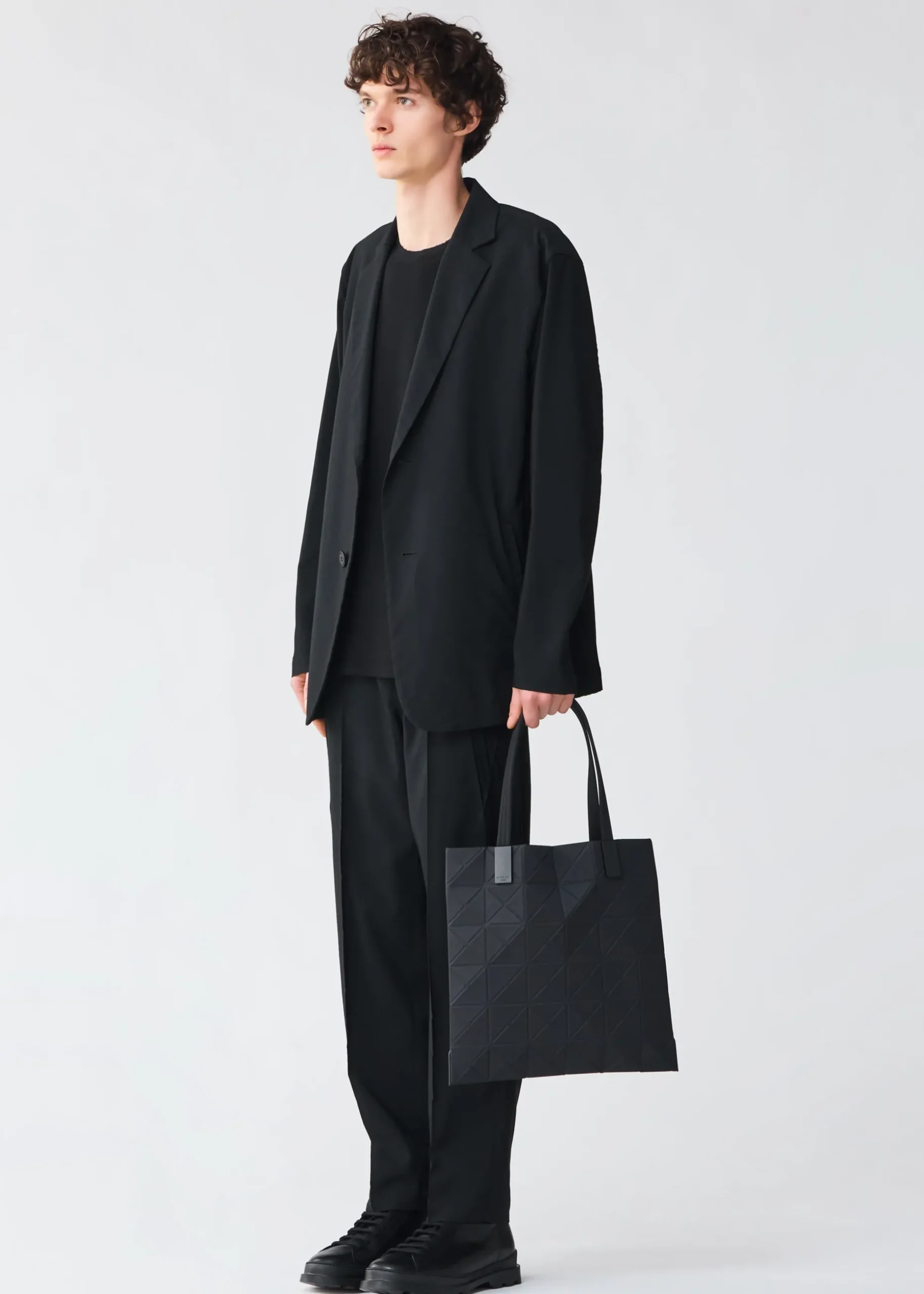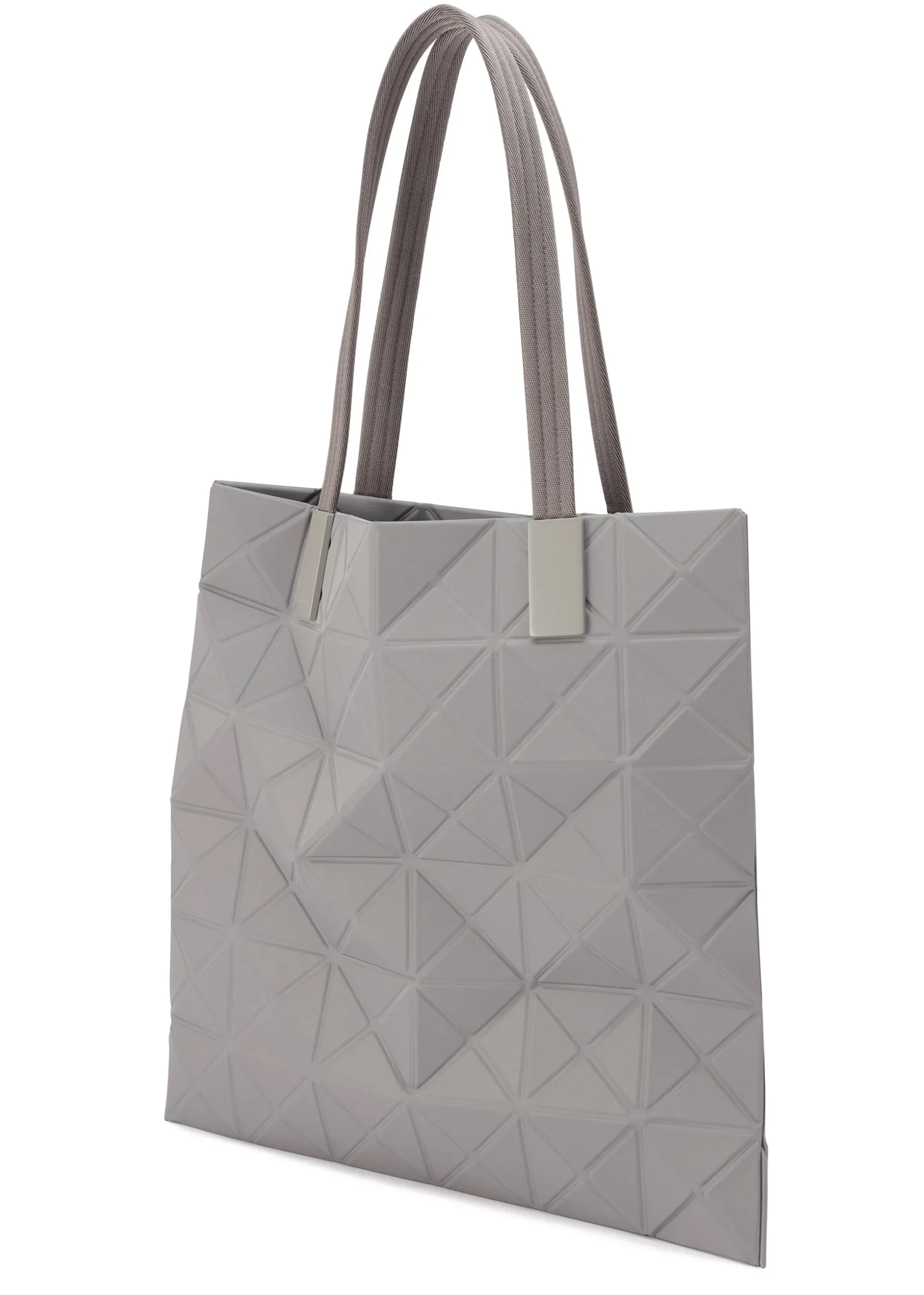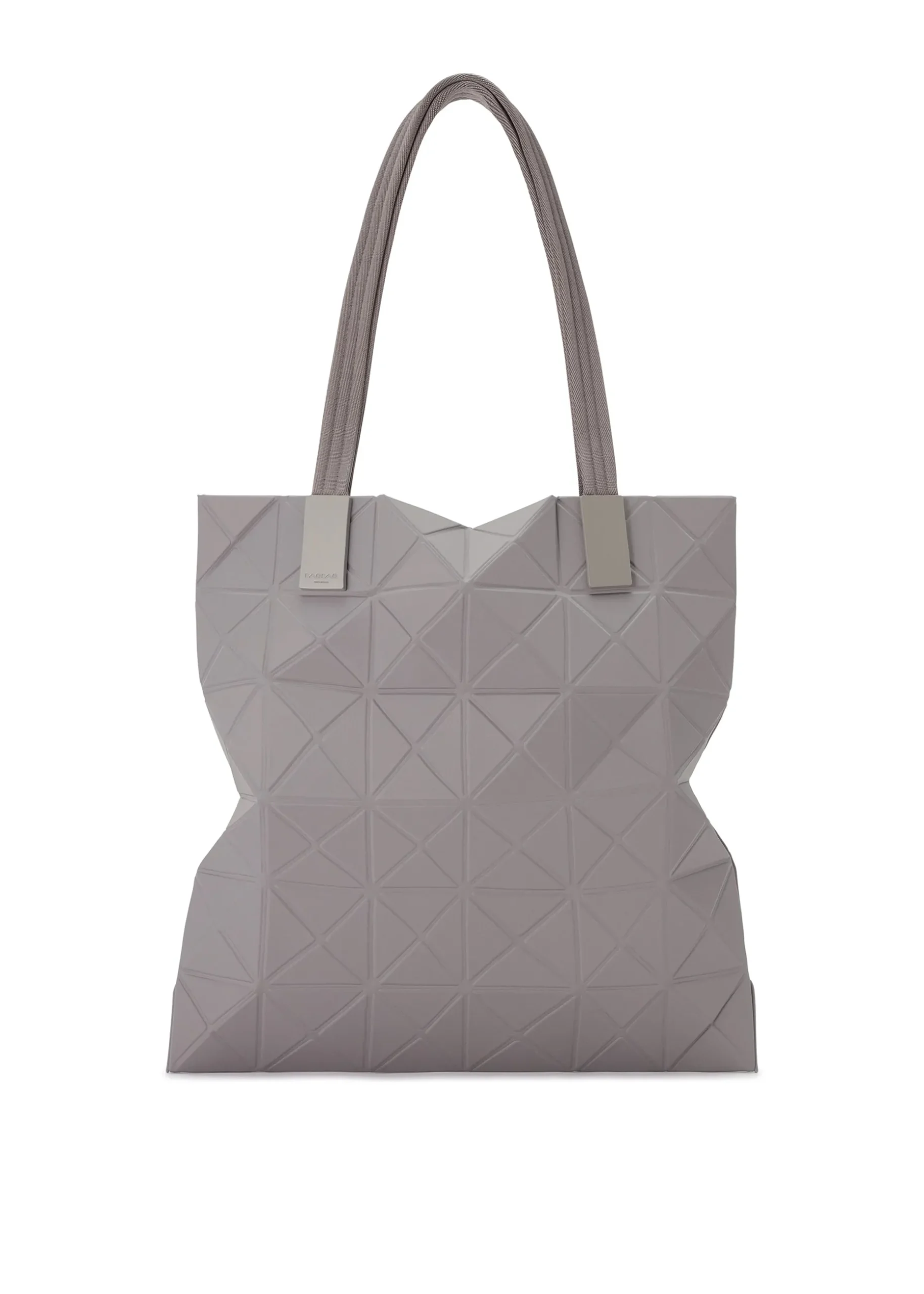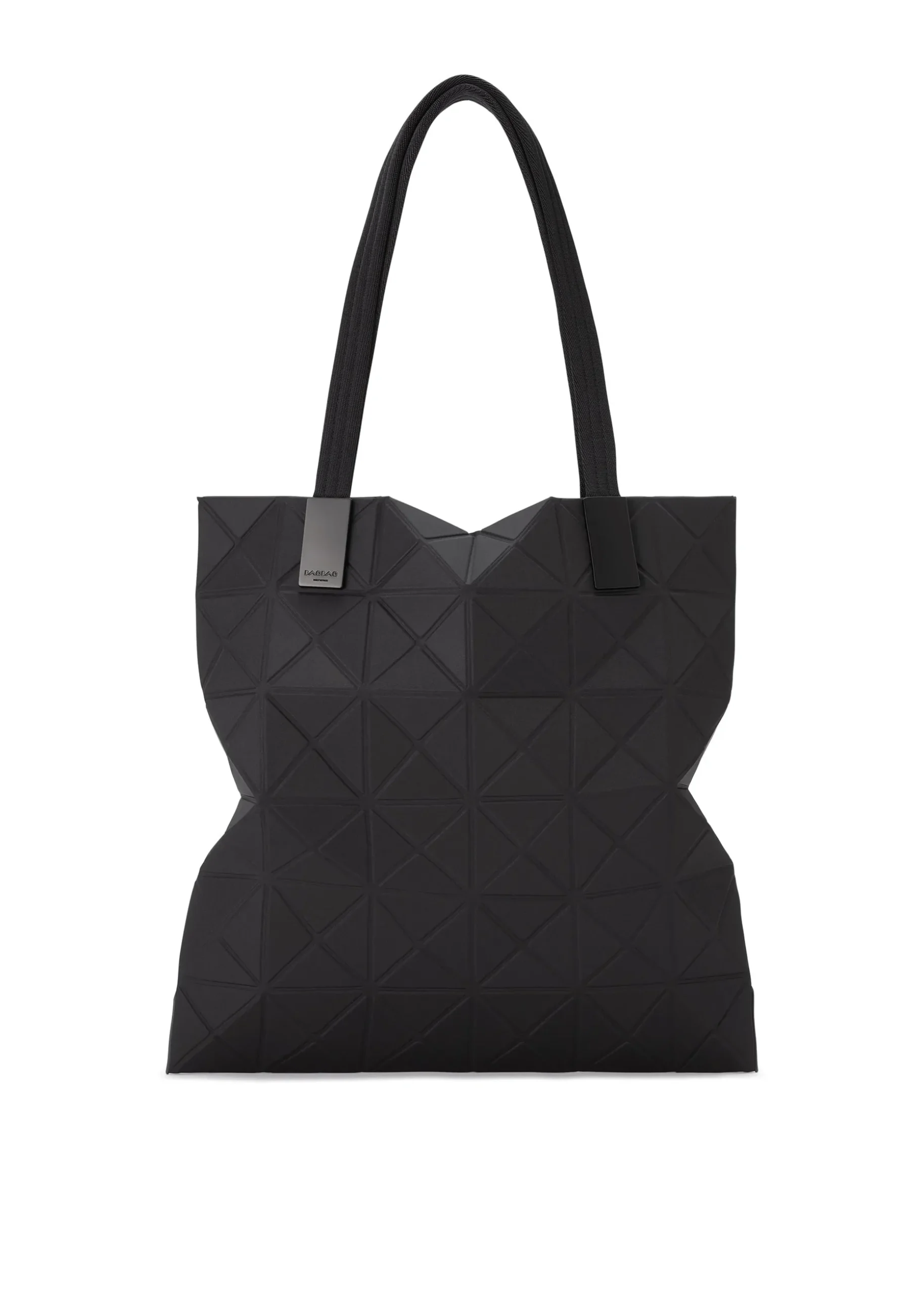 This TRACK series tote bag further embodies the charm of the triangular units that symbolize the brand and Issey Miyake’s fundamental “a piece of cloth” concept. By encapsulating the brand’s characteristic isosceles triangle units in the fabric, the bag’s shape is created through structural movement, and you can enjoy its impressive look as it goes from flat to three-dimensional. The bag pursues functionality with its minimalist parts in one color tone and thick nylon handles. It combines low-key beauty with durability through its use of subtly glossy, flexible fabric and resin parts to prevent scratching at the corners.