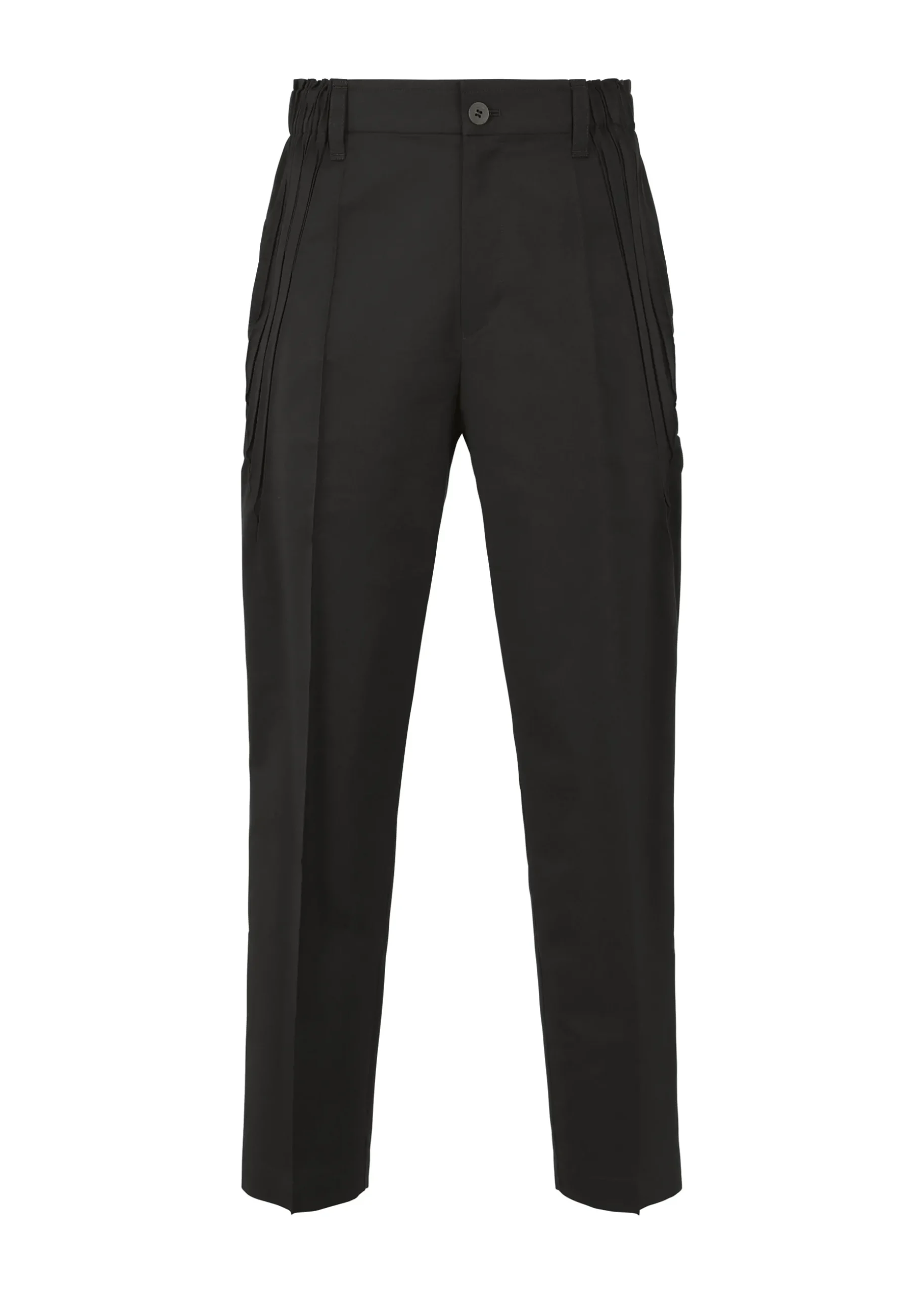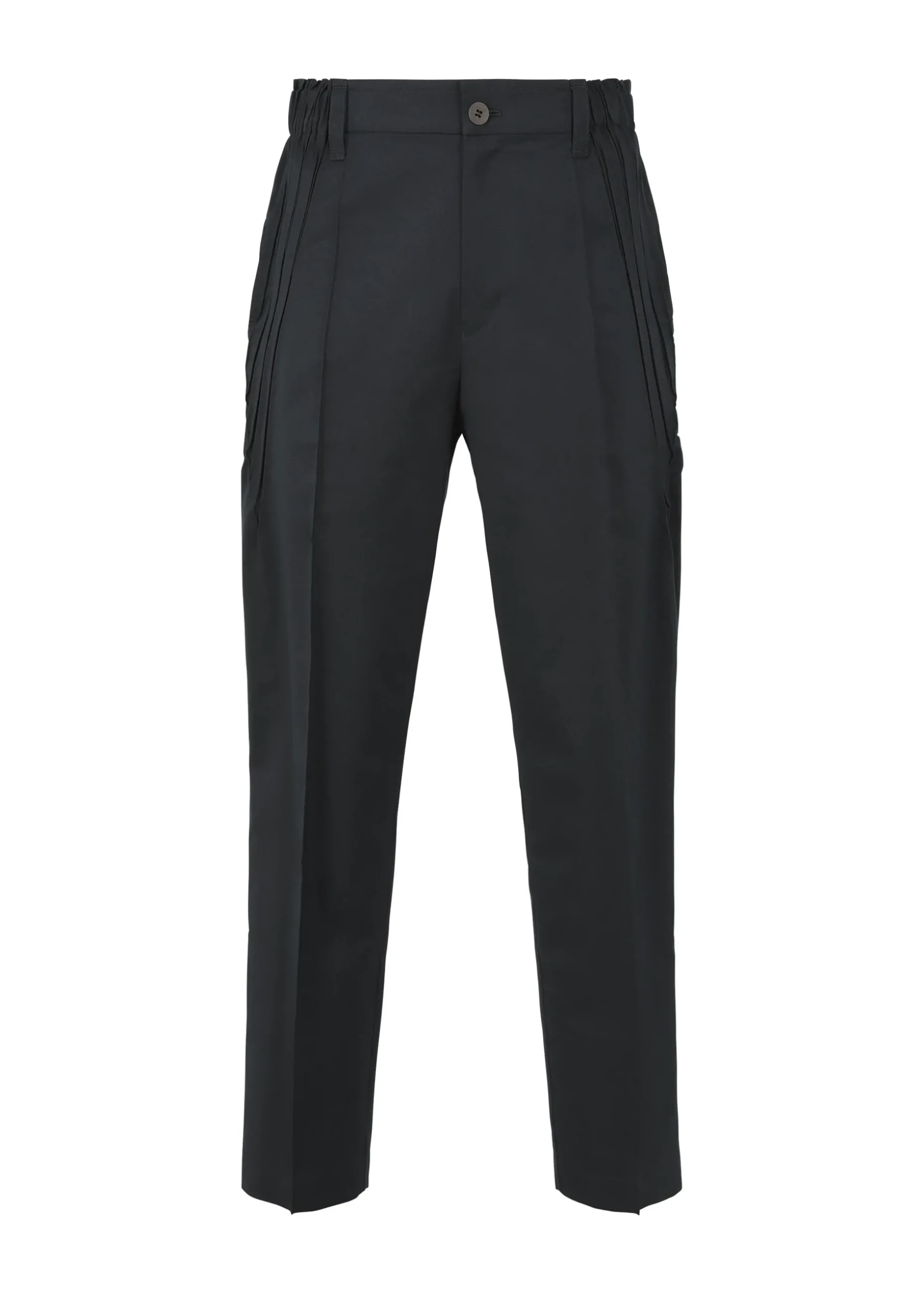 Tapered pants featuring a center crease designed by Steam Stretch(*). A lightweight stretch material that is perfect for everyday use, made from a blend of polyester and cotton-polyester yarn, which are partially made from plant-based raw materials. It has a hip pocket.