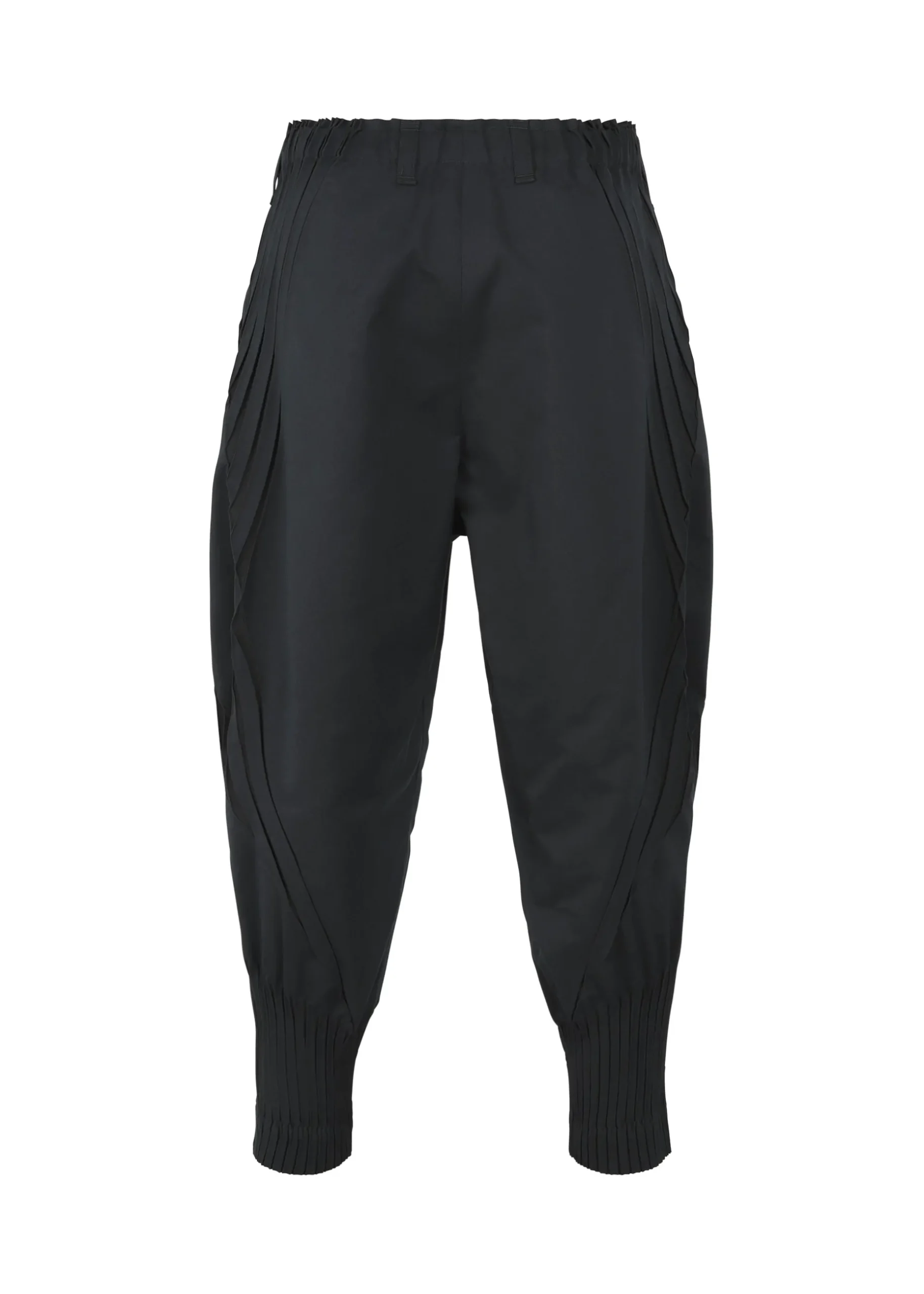 Cropped pants featuring a crease designed by Steam Stretch(*). A lightweight stretch material that is perfect for everyday use, made from a blend of polyester and cotton-polyester yarn, which are partially made from plant-based raw materials. The crease design combines beauty and stretch.
