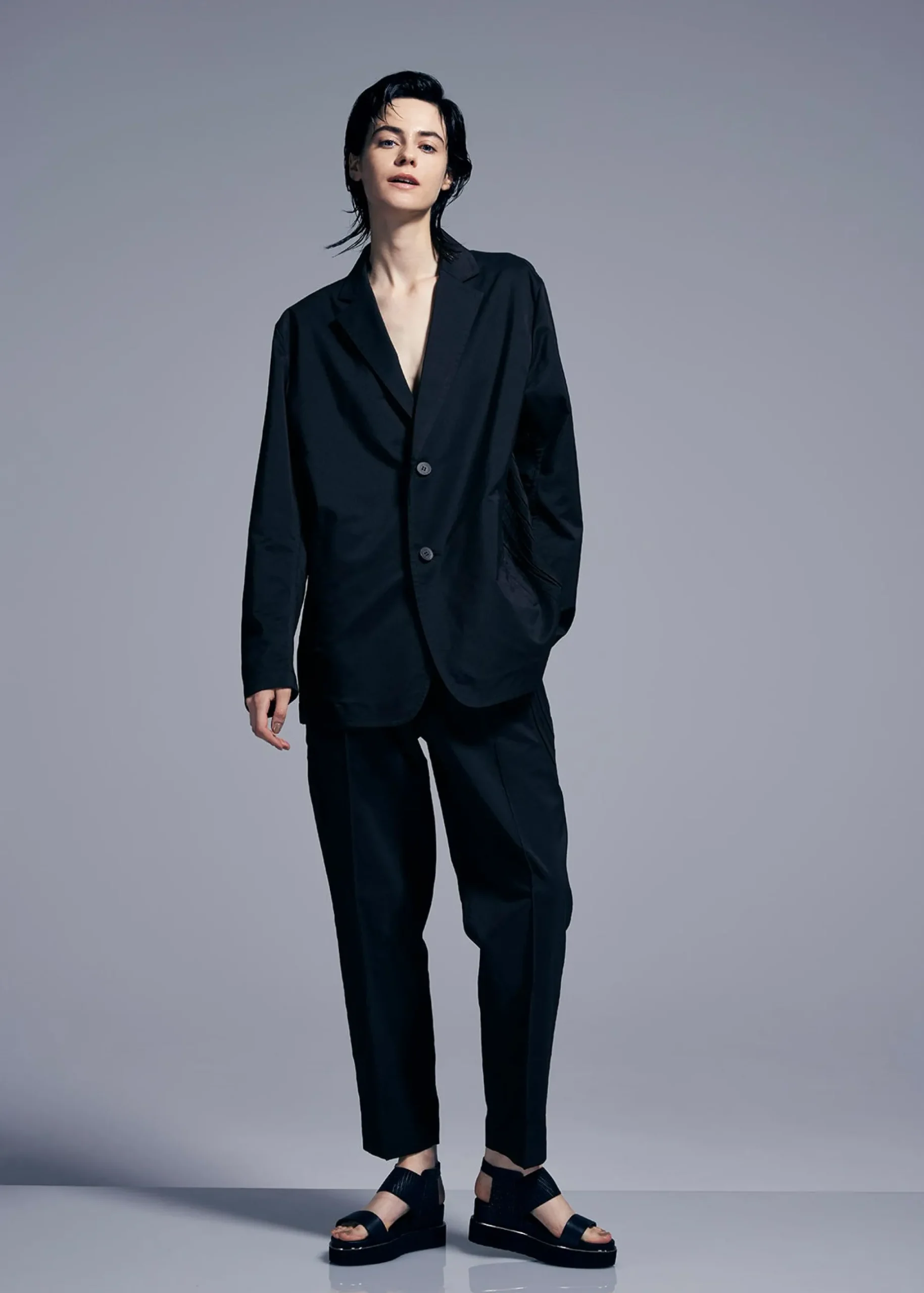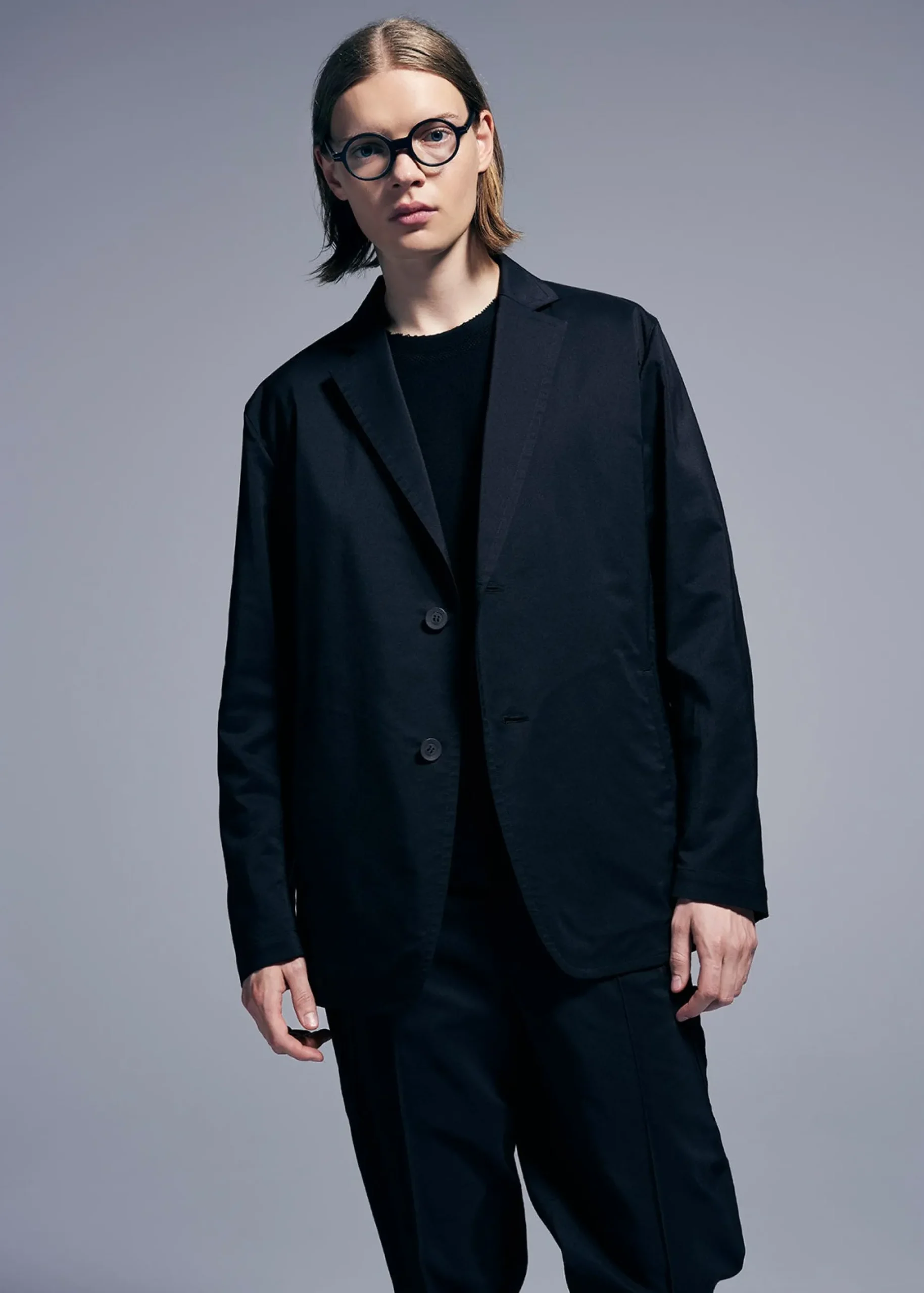 A lightweight, two-button jacket that is perfect for everyday use, made from a blend of polyester and cotton-polyester yarn, which is partially made from plant-based raw materials. The bellows shape created by Steam Stretch (*) is placed on the sides of the waist, and the design combines beautiful lines and stretch when worn.