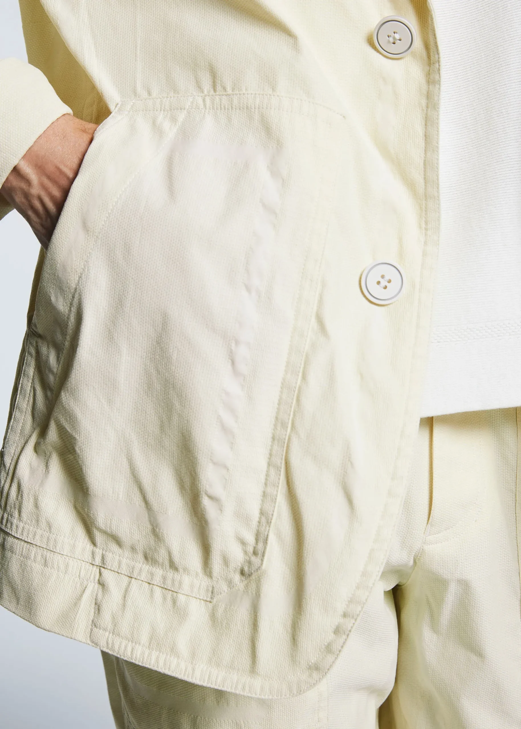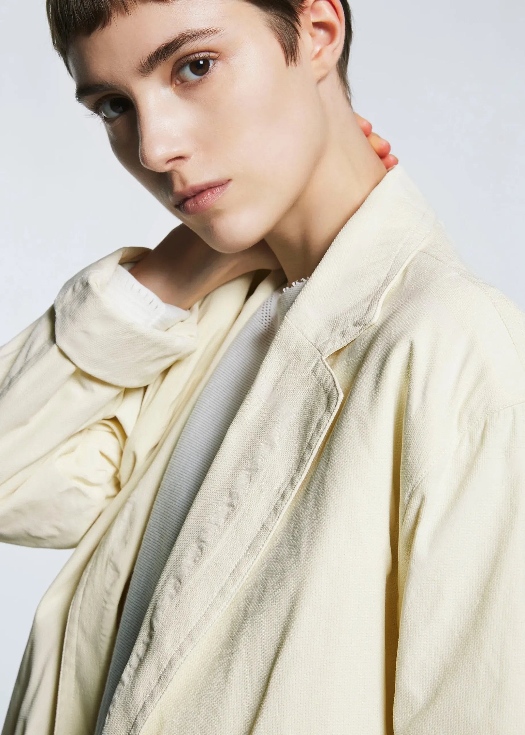 This jacket is made from material that can be freely shaped by the wearer. When the soft cuffs are rolled up, the sleeves keep their shape and do not fall down. You can arrange the look of the jacket according to your needs and mood at the time, such as when you are working or if you want to change your style. The jacket offers relaxed comfort.